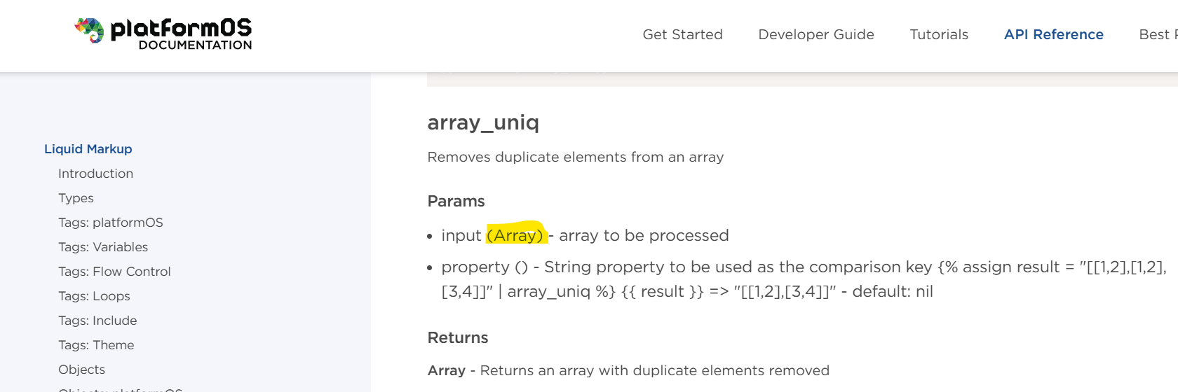 The platformOS filter docs will always document the intended type of a filter in the input bullet point: