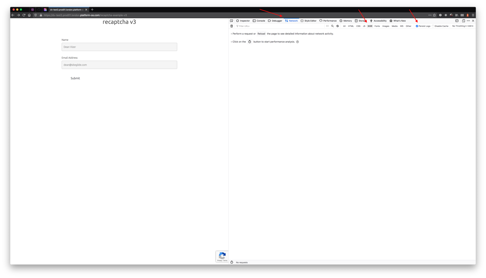 Now that you have the network tab open, submit the form to generate activity.