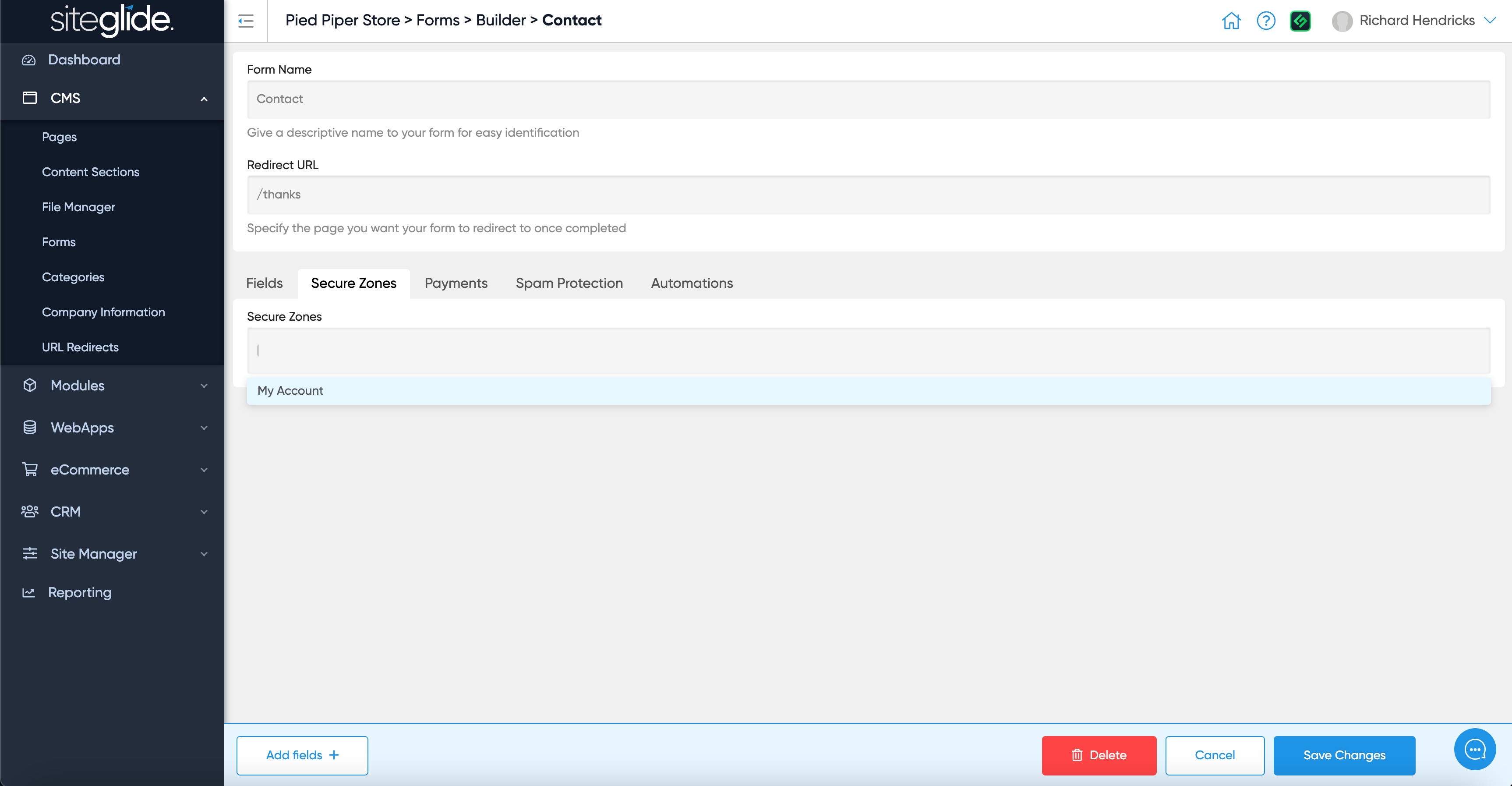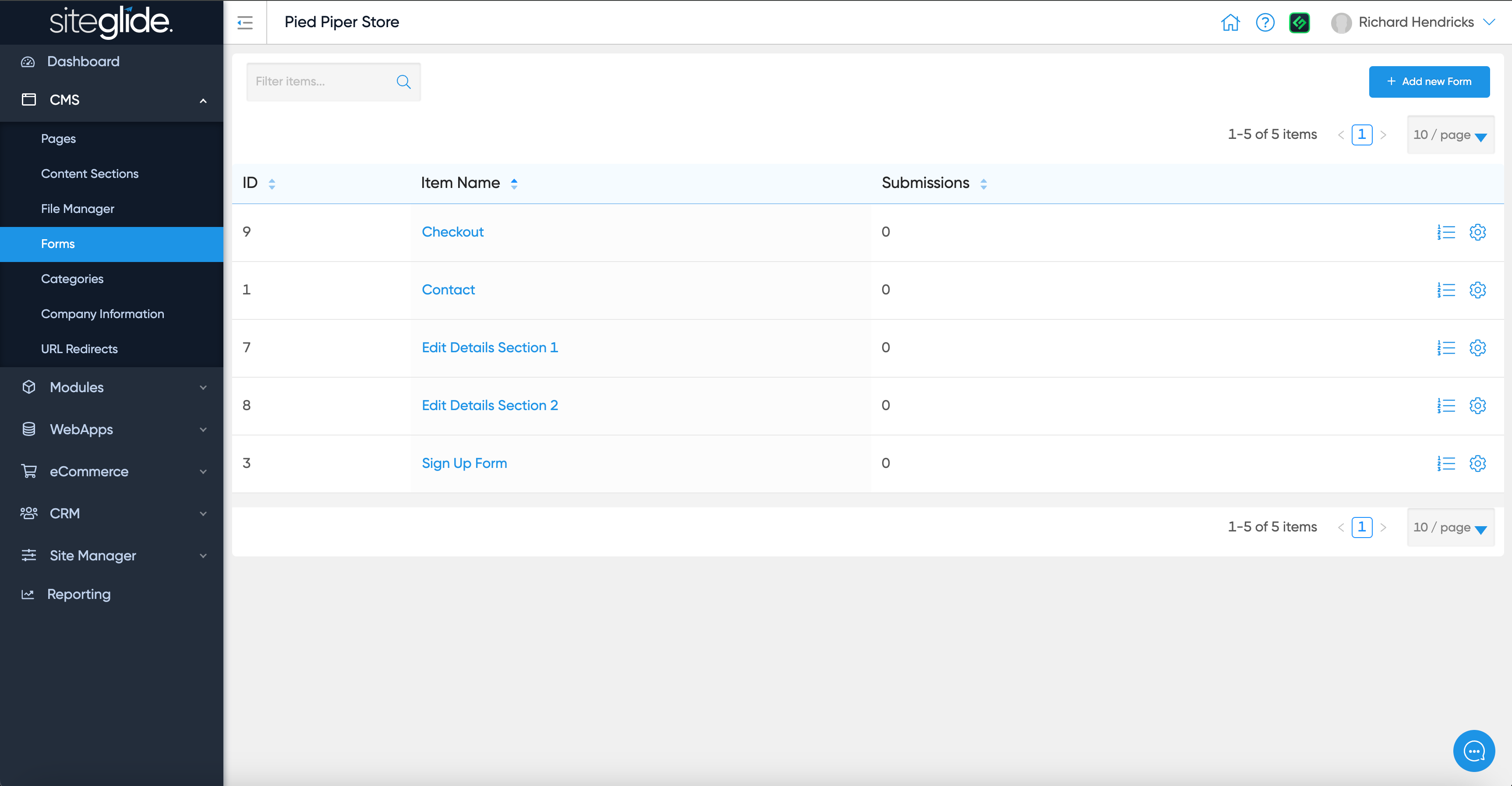 You can find forms under CMS in the main menu. You can edit an existing form or create a new one: