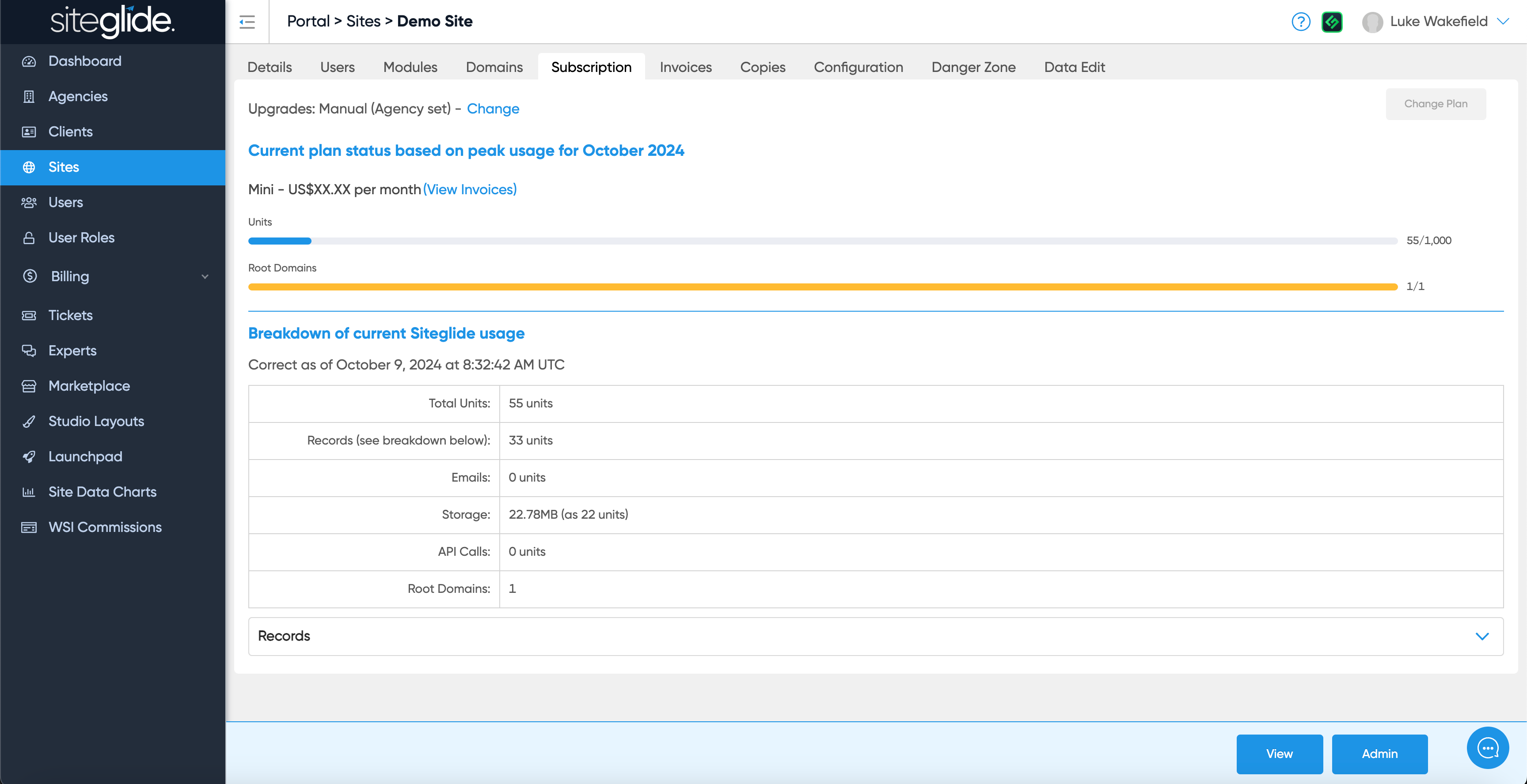 Sites can be automatically upgraded to the next available plan on the 1st of the following month if the cost of Extras exceeds the difference in cost to upgrade to the appropriate plan. Automatic upgrades by the system ensure that if usage increases on a site, the cheapest option is chosen and charged.