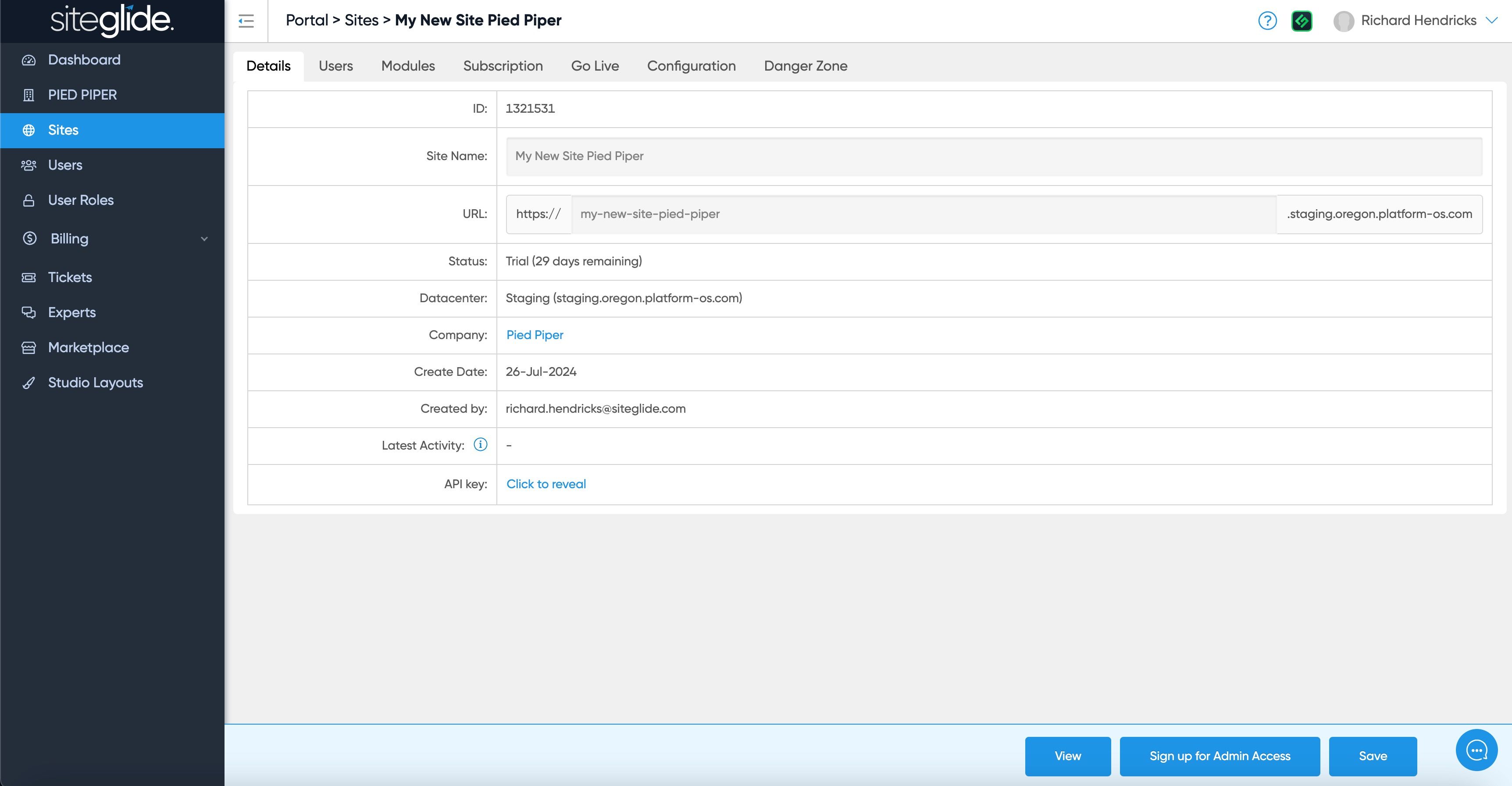 This guide will walk you through the process of creating a new site using Siteglide's admin area.
