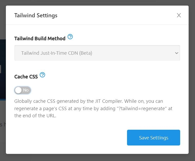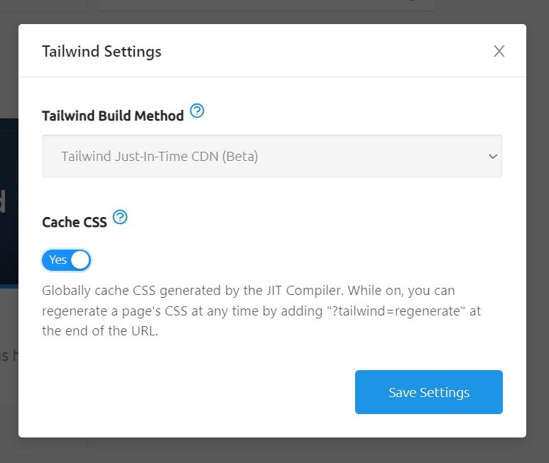 There’s another setting in the Tailwind Settings menu in SiteBuilder called Cache CSS.