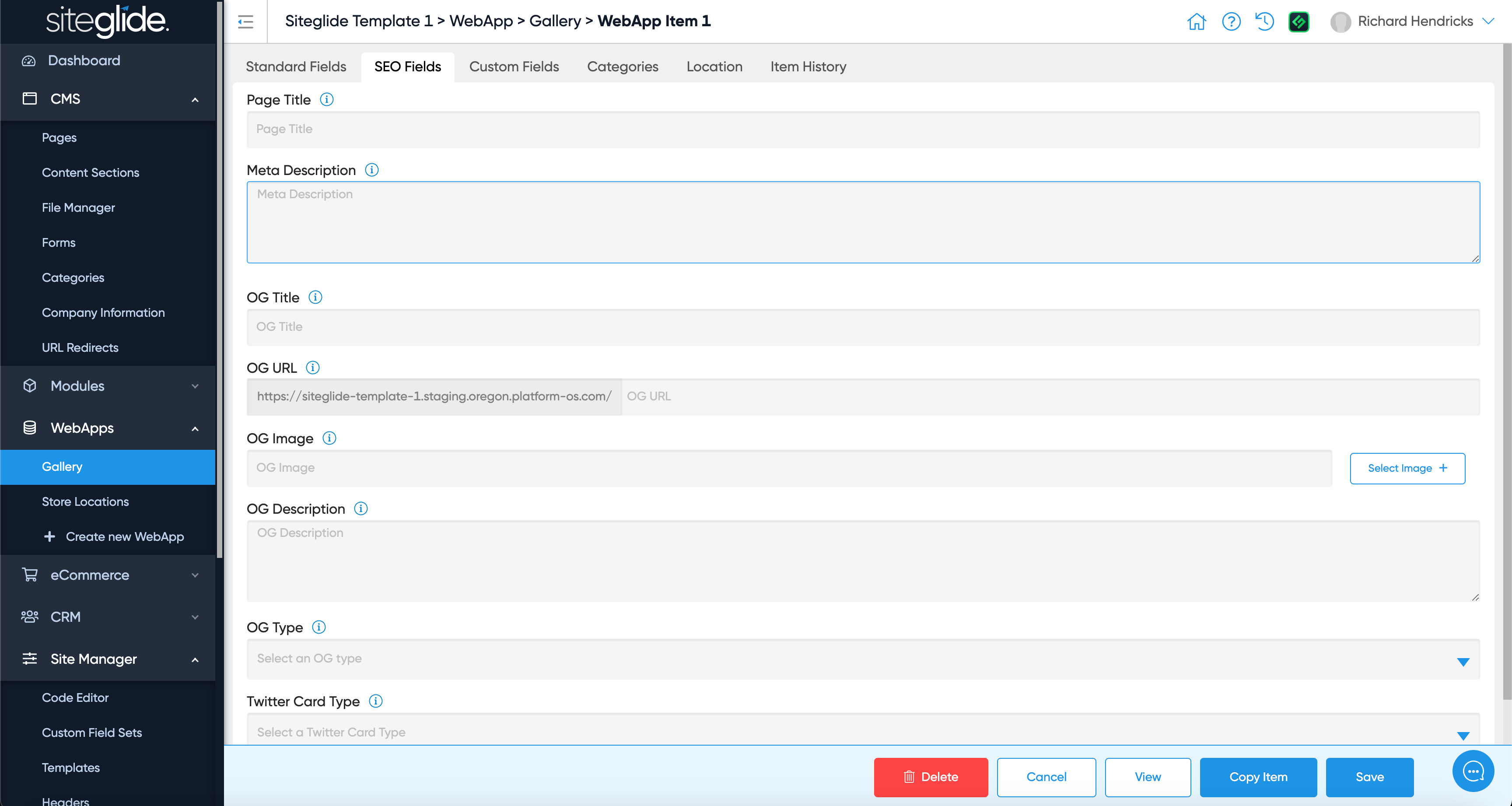 SEO and Open Graph fields are the same across all WebApps and help to enhance your items and your website, achieving higher rankings.