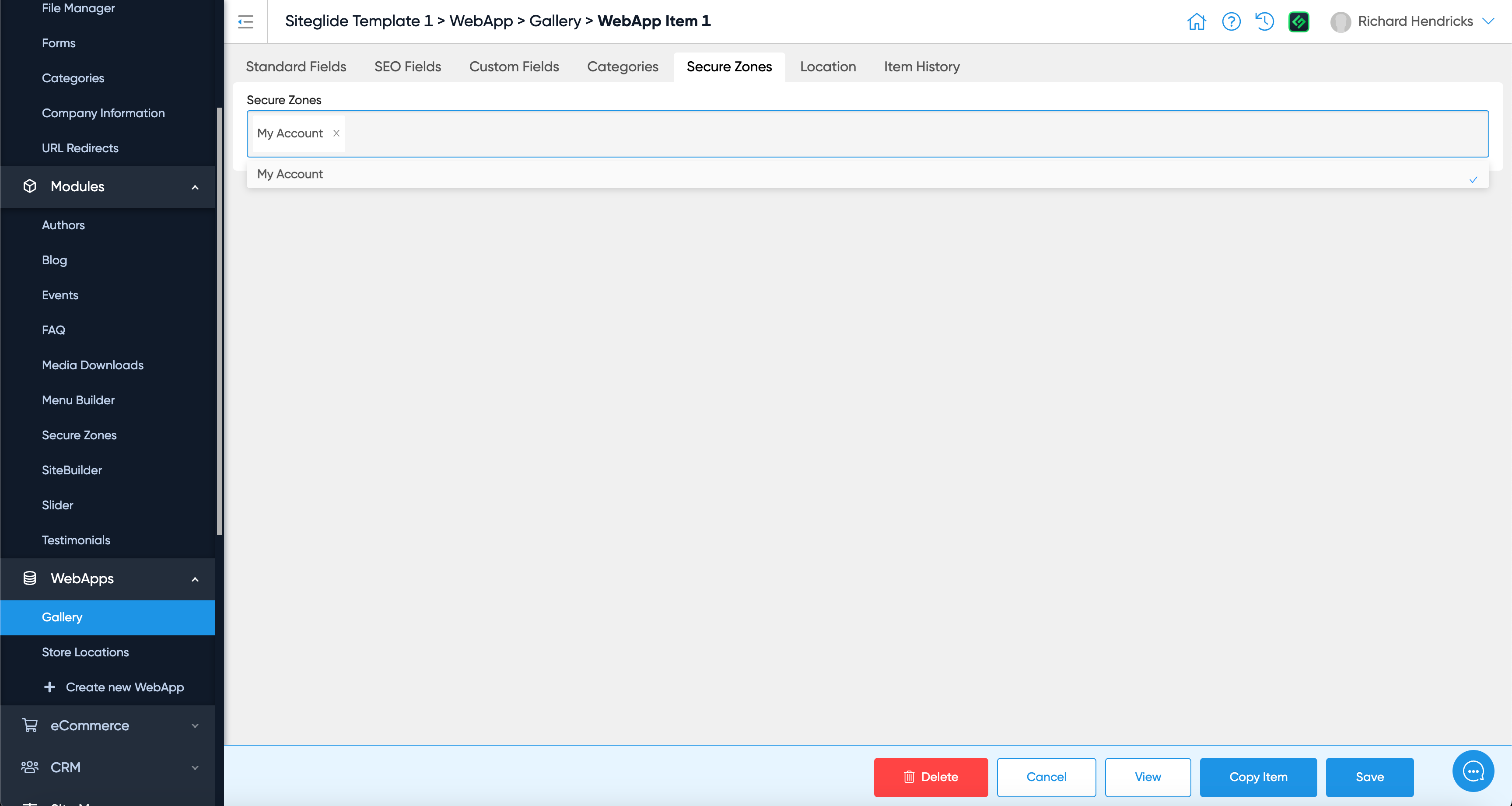 With Secure Zone options set up in your WebApp Builder, you can use the dropdown to add any existing secure zones on your site to this item.