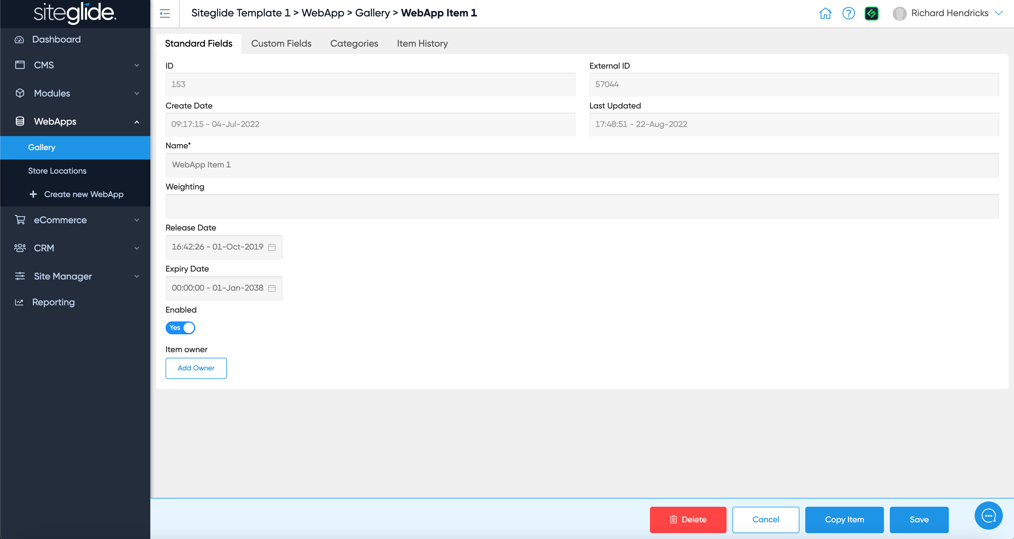 - Item Owner - Choose a user from your CRM to own this item
