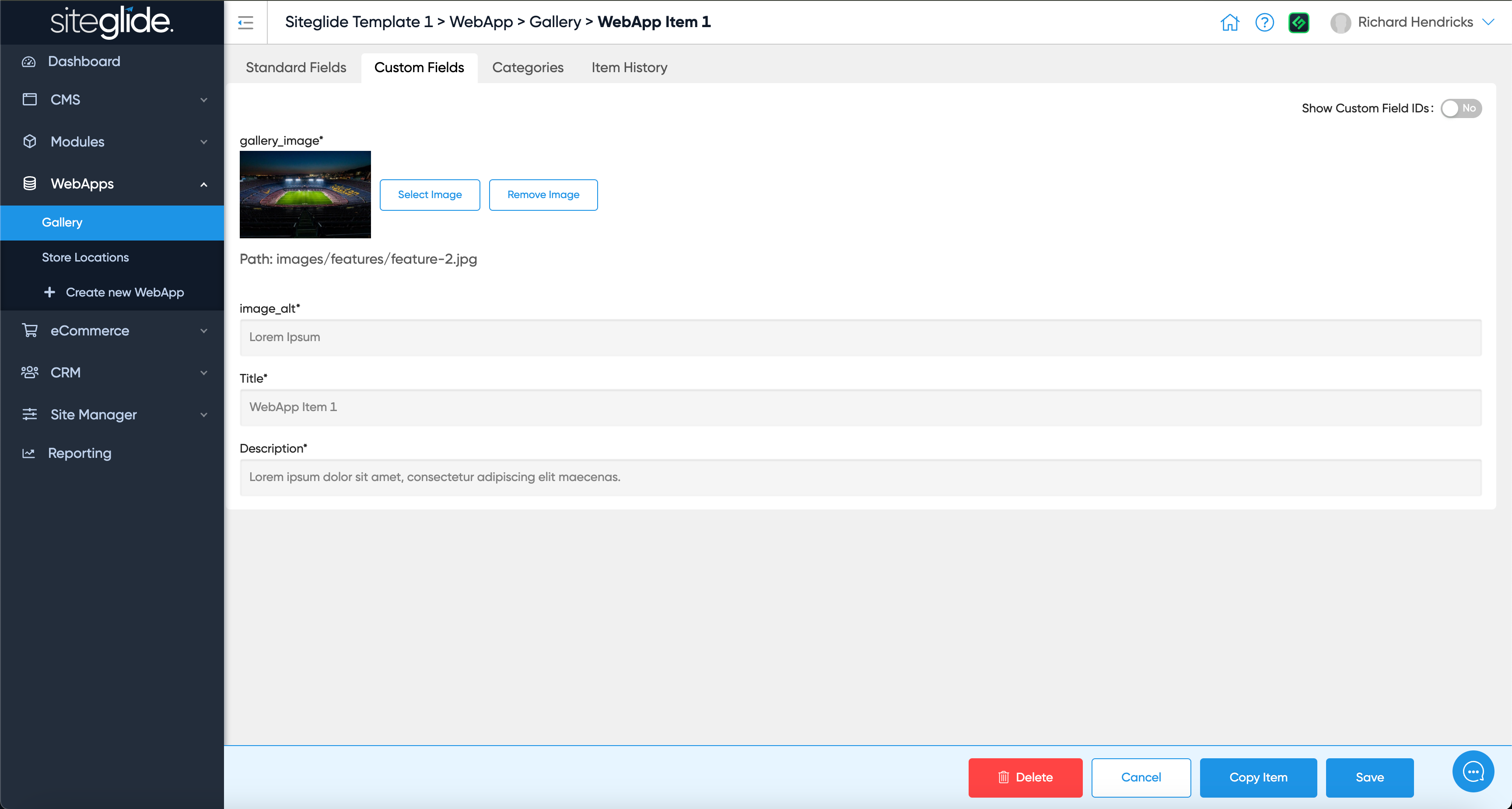 You will see the custom fields you create in the setup stage and can fill in the content: